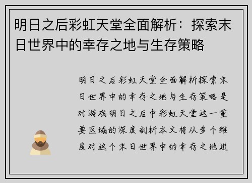 阅读文章摘要:格罗姆之血是《魔兽世界》中的一种珍贵材料,广泛用于制药和炼金等多项领域。作为玩家角色发展和生存的一项重要资源,格罗姆之血的获取途径和分布地点常常成为玩家探讨的焦点。本文将围绕格罗姆之血的分布地点以及获取途径展开详细解析。首先,我们将介绍格罗姆之血的基础知识以及它在游戏中的重要性。接着,分别...